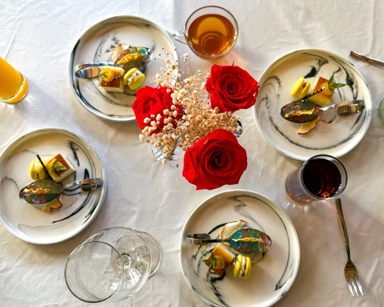 在日光私廚有營養師與無國界主廚設計專屬婚禮的客製化菜單,運用當代法菜廚藝打造跨國界獨特風味。以法式料理擺盤藝術呈現餐點,口味融合東西方元素,無論是外國來的賓客或偏好在地風味的長輩都能好好享受美食。